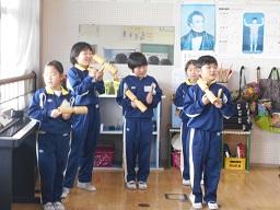 今日の3時間目に、2年生の音楽の授業を見てきました。「合そうすることの楽しさを、あじわおう」ということで、「チャチャ マンボ」をいろいろな楽器に別れて楽しく合奏していました。子どもたちの顔が、とてもいきいきとしてしているのが印象的でした。中には、踊りながら演奏している子もいました。国語や算数の時間には見られない子どもたちの顔が見られて、とても楽しかったです。