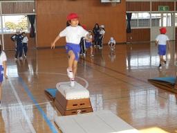 今日の3時間目に、1年生の体育の授業を見て来ました。「器械・器具を使っての運動遊び」の領域で、体育係を中心に準備運動をした後に、跳び箱を使っていろいろな動きを楽しんでいました。子どもたちは、グループで協力しながら跳び箱とマットを準備し、汗をかきながら、跳んだり、跳ねたりしていました。