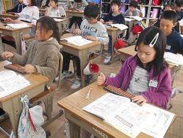 今日の4時間目に、3年生がそろばんボランティアの方をお招きしての2回目の授業がありました。今日は3けたのたし算ひき算まで進んでいたので、苦労している子どもたちもいましたが、何とかボランティアさんたちの指導のおかげで乗り越えていました。