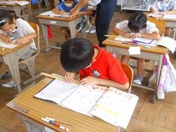 今日の2時間目に、2年生の算数の授業を見てきました。竹尺を使って、10㎝の直線を引くという作業を行っていました。大人にとっては簡単なことですが、子どもにとっては竹尺がずれてちょっと難しそうでしたが、みんながんばって引いていました。