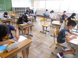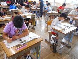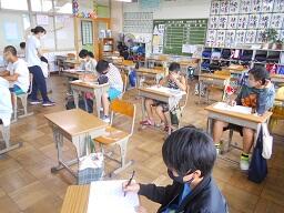 今日の3時間目に、6年生の算数の授業も見てきました。分数のかけ算のまとめのようで、各教室でプリントの問題を解いて、答え合わせをしていました。どちらの教室もとても静かで集中していました。