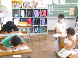 今日の2時間目に、少人数で実施している6年生の算数の授業も見てきました。「分数の倍」の学習が進められていまいたが、どちらの教室も子どもたちはスムーズに問題を解いているように見えました。