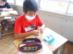 今日の朝、いつものように教室を見て歩いている途中、1階の管理棟から教室等への通路で2年生男子がランドセルの中身を間違えて散乱させてしまいました。その後その男子は、慌てて散乱した荷物を通路のはしによけてからランドセルに入れ直していました。通路の真ん中で入れ直していては、通る人の邪魔になると考えてのこの行動、素晴らしいと思いました。いいことめがね39、次に通る人のことを考えての行動がとれたこの2年生男子に決定です。片付け終わった後に、ほめておきました。