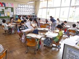 今日の1時間目に、4年生の国語の授業も見てきました。「ひとつの花」の単元で、一斉音読の後に、戦争に行く前のお父さんの気持ちを考える授業が展開されていました。さすがに4年生の教材ですから、深く考える必要が出てきていますが、みんな真剣に取り組んでいました。