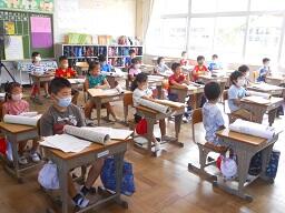 夏休みが明け、今日から学校がスタートしました。朝の様子を見てきましたが、みんな元気に登校してきました。どの学年も、夏休み中の課題の提出をしていましたが、とてもがんばってきたようです。