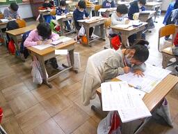 今日の2時間目に、個人や学級の学力を全国的傾向に対比させて客観的に知り、今後の効果的な指導をするための資料とすることを目的に、学力検査を(CRT国語)を実施しました。どの学年も真剣に取り組んでいました。明日は算数を実施します。