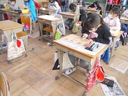今日の3時間目に、4年生の図工の授業を見てきました。4年生で初めて使う彫刻刀で木版画に挑戦していました。みんな安全に気をつけて作品を仕上げていました。