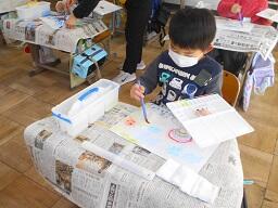 今日の5時間目に、1年生が図工で初めて絵の具を使うので見てきました。初めてなので最初はとても不安そうでしたが、慣れてくるとみんなとても上手にぬれるようになっていました。(初めてなので全員掲載しました。)