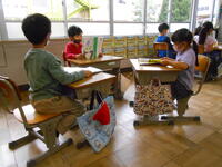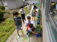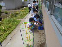 植木鉢を運んで机に置いたり、外でしゃがんだりして、観察を行いました。