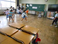 1年生は音楽の「音楽に合わせて動こう。」です。