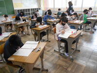 1年生は外国語活動の「英語で気持ちを言ってみよう」です。