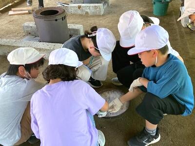 各班で協力し合い、なんとか塩が出来ました。後片付けもがんばりました。子どもたちがつくった塩は、それぞれが持ち帰りますのでおうちで味見してみてください。