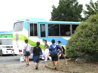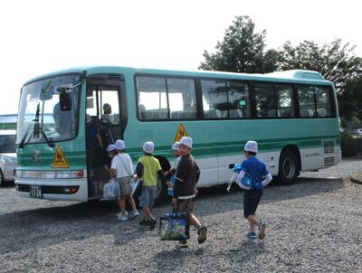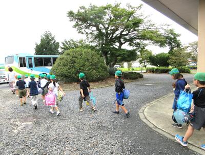 初日の今日は、1年生・2年生・3年生が町バスに乗って出発しました。