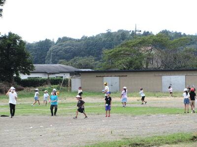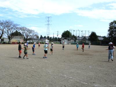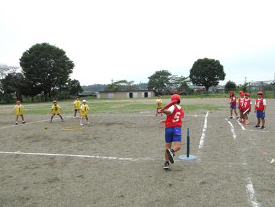 4年生の体育では、校庭でティーボールの学習です。暑さ指数を確認した上で授業を行いました。