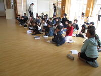 いくつかの曲のリズムを聞いて憶え、リズムを練習してから、本物の太鼓や鐘などを実際に叩きました。子供たちは、何度も聞くことで感覚で日本独特のリズムを身に着け、とても上手に、また楽しみながら演奏することができました。