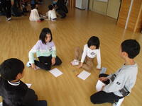 町小学校駅伝競走大会は会場の関係でしばらくの期間タイムレースとなりますが、持久走の学習の中で駅伝の経験をさせようということで、駅伝に関する学習活動を行っています。