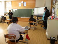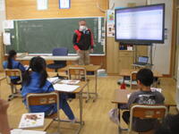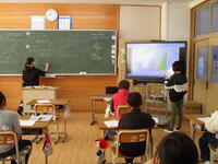 【6年生】英語の時間です。英語専科教員が、今まで学習したことを児童から引き出しながら進めています。