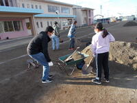 29日(土)に、PTAによる奉仕作業を行いました。今年度は、従来の作業場所の他に、来月18日(金)に実施予定の校内持久走大会に向けて、校庭及びサッカー場の整地作業と時計台への防腐剤作業を追加して行いました。おかげさまで、作業前と作業後では見違えるほどきれいになりました。今日からの持久走の練習は、整地されたグランドで児童が気持ち良く走れることと思います。