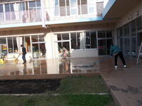 今日は、もちの木広場の芝生の手入れに除草、クジャク小屋の清掃(高圧噴霧器を利用して)行いました。きれいになったクジャク小屋では、クジャクが気持ち良さそうに過ごしていました。