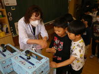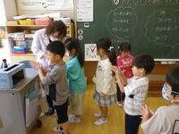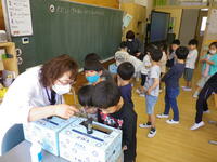 「もちのきボランティア」の方をお招きして、1年生が手洗い指導を受けました。