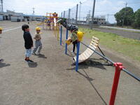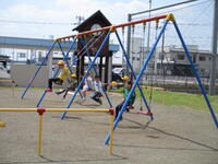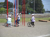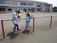 2校時後の休み時間は、北中学校サッカー場までは行けないので、高学年も校庭で遊んでいます。一輪車や竹馬、ブランコなどを使っています。一輪車が上手な児童がとても多いです。