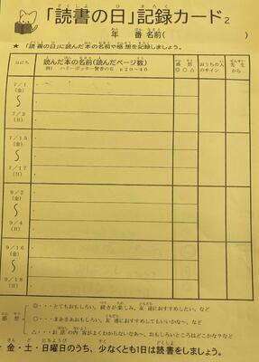 本日は、読書の日です。参考までに、3年生児童の「読書の日」記録カードを掲載します。