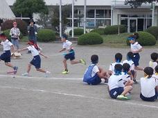 今日は、2校時に、全校綱引きの練習をしました。1~4年生が引いている綱を、後から5・6年生が引く応援綱引きです。大きな声で「よいしょ、よいしょ。」と気合十分でした。