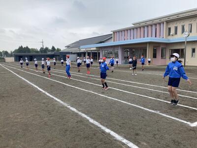 本校では、準備運動後の補強運動と位置づけて実施しています。縄跳び運動は、一人でも実施できます。授業時間以外(休み時間や家庭で過ごす時間)にも積極的に行い、体力の向上を図っていってほしいと思います。