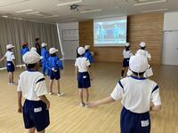 運動会のダンスは、1年生から6年生までが同じ曲で同じダンスを行います。1・2年生にとっては、振り付けを覚えるのも大変です。そこで、今日の授業は6年生も参加して、1,2年生と一緒に躍りながら、振り付けを教えてもらいました。