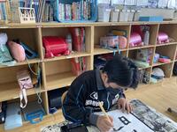 6年生は書写は、筆順と点画のつながりに気をつけ、「快晴」を半紙に書きました。日常的に筆を利用して文字を書くことが少なくなってきていますが、毛筆は、日本の文化でもあります。一文字一文字に心を込めて書くことが大切です。