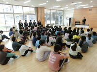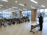 始業式の校長の話では、今年度後半の6カ月をどのように過ごすかという話をしました。6年生6名の代表が、残り6カ月をどのように過ごしたいか発表しました。学習面・運動面や、6年生としての生活の仕方などについての目標を堂々と述べることができました。