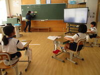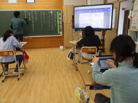 【6年生】国語で、熟語の学習をしていました。タブレット、電子黒板、黒板を総動員していました。