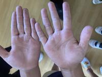 雲梯や登り棒をたくさんすると手に豆(豆のでき方には個人差あります。)ができます。豆がつぶれるととても痛いのですが、それでも雲梯や登り棒をする1年生がいます。毎日遊んでいるので、雲梯や登り棒がとても上手になりました。痛くても我慢しして行うことも時には大切です。雲梯や登り棒を頑張っている1年生が頼もしく感じます。