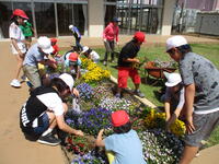 今日の「もちのきタイム」には、全校生で花壇の整備を行いました。今まで植えてあったパンジー等を抜き取り、夏・秋に向けての草花を植える準備をします。