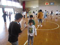 お迎えの言葉の後、「1年生の自己紹介」「ピラミッドじゃんけん」をしました。