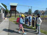 本日は、中学生が小学校正門とプロムナードであいさつをしてくださいました。