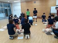 本日、本校全職員が参加し、「普通救命講習会」を実施しました。使う機会がないことがよいのですが、万一のための研修です。