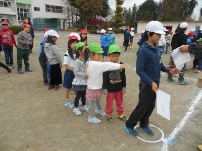 11月22日のもちのきタイムは「全校リレー」でした。この日は、幼小連携事業をかねて、保育園の年長さんも一緒に走りました。もちのき班毎に走る順番を考え、折り返しリレーを楽しみました。運動委員会の児童がしっかり準備、片づけを行ったり、説明をしたり、活躍しました。