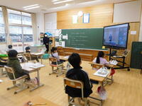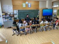 また、今日の4校時に、6年生が国際交流会を行いました。町内の中学校に勤務するALTが、本校に来て行う予定でしたが、 新型コロナウイルス感染症の感染拡大防止の観点から、オンラインによる開催となりました。