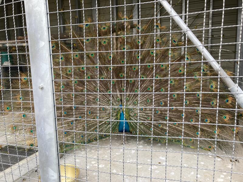 学校で、飼育しているクジャク(ジャック)が大きく羽を開いていたので、写真に収めました。