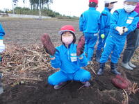 大きく育ったサツマ芋を掘り出した子どもたちは、満面の笑顔で芋を手にしていました。