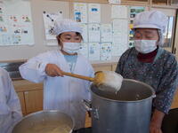 献立を考える上で大切にしていることは、①栄養のバランス②児童生徒の好みに合わせる工夫⓷クリスマスや入学式、卒業式等のイベントとの関連を考慮し、主食、主菜、副菜、汁物の献立を考えていることを話されました。