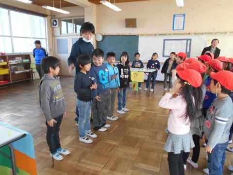 本日にじいろ保育園の園児たちが来校し、2・3校時を使って『1年生との仲良し交流』をしました。2校時目は生活科室を使って、1年生が、学校紹介・お店屋さんごっこ・発表「校歌」「くじらぐも」・プレゼント「アサガオのたね渡し」を行いました。園児からは、「恋ダンス」の披露がありとても和やかな会となりました。3校時目は、体育館で仲良くドッジボールをしました。とても楽しいすてきな交流になりました。にじいろ保育園児の皆さん、また遊びに来てくださいね。