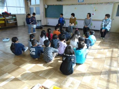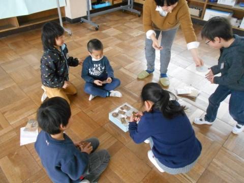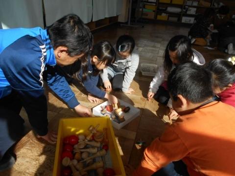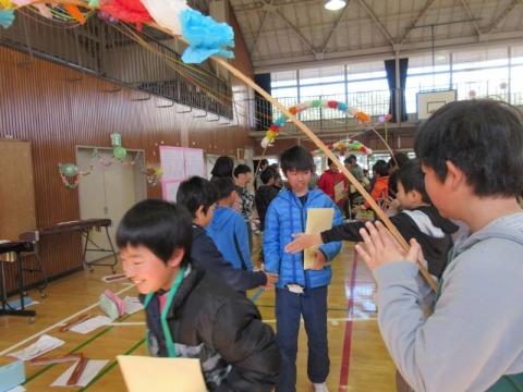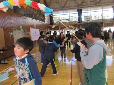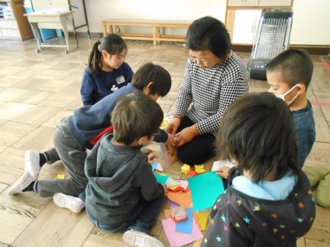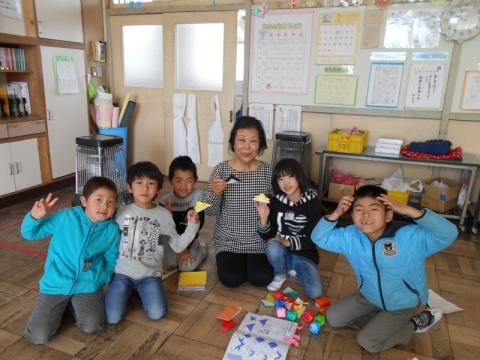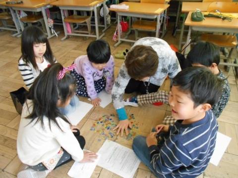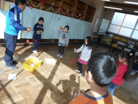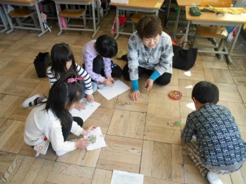 21日(火)の2・3校時に、1年生の祖父母や保護者を招き、「昔の遊び体験会」を実施しました。子ども達は4グループに分かれ、「おりがみ」「ビー玉・おはじき」「メンコ」「けん玉・こま」遊びを順番に体験して回りました。どのコーナーも子どもたちの笑顔や歓声が沸きあがり、楽しい時間を過ごすことができました。遊びの体験だけでなく、大人の方々との交流も子どもたちにとってとても有意義なものになりました。ご協力いただいた祖父母や保護者の皆様本当にありがとうございました。