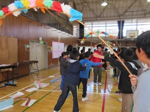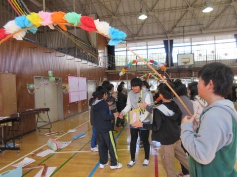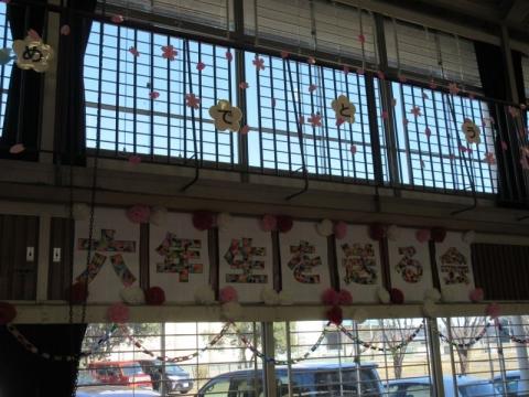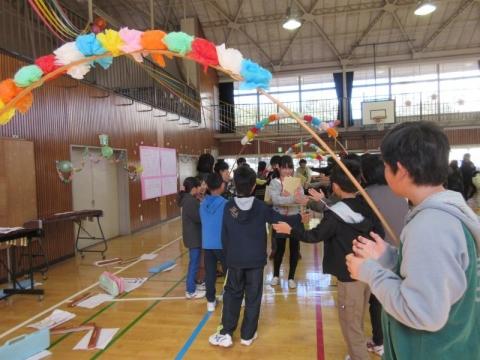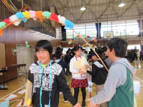 みんなで6年生を送りました(花のアーチ)
