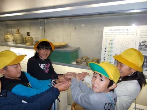 本日、4年生が社会科校外学習に出かけました。陶芸メッセでは、学芸員さんから、益子焼の歴史(江戸時代の山水土瓶・明治時代の汽車土瓶・昭和時代の釜飯・平成時代のフリーカップなど)について話を聞き、美術館で作品を鑑賞しました。午後には長谷川陶苑にて手びねり体験を行い、思い思いの作品を作りました。直に土(粘土)に触れ陶芸家になりきって自分の個性を焼き物で表現しようとした体験は今後の生活に必ずや生かされることでしょう。