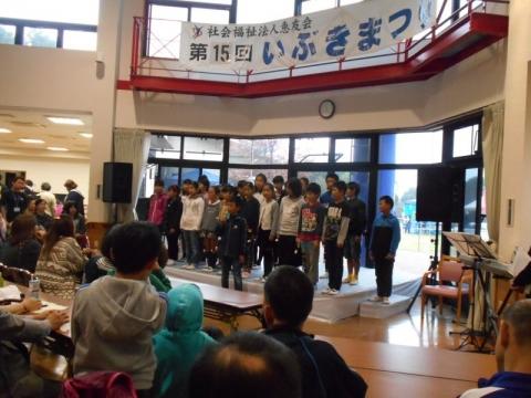 第15回いぶき祭りに本校の4・5年生が参加し、素敵な音楽を披露しました。まず、4年生が「エーデルワイス」の曲を、1番はリコーダーで演奏し、2番を英語の歌詞で合唱しました。次に、5年生が「翼を抱いて」を混声合唱しました。最後にいぶきの里の方々と児童が一緒に「ひまわりの約束」を合唱しました。どの発表に対しても会場からたくさんの温かな拍手が沸き起こり、すてきな時間が流れていました。いぶきの里の方々をはじめ、児童の送迎していただきました保護者の皆様ご協力ありがとうございました。