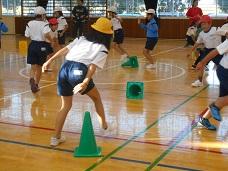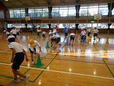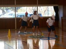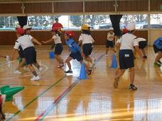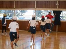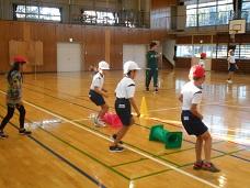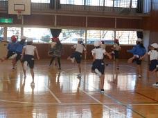 4年生の今日の6校時は、外部の先生をお迎えし、楽しく体を動かす運動を体験しました。準備運動の後、音楽に合わせてリズミカルに体を動かす体操、その後、なわとびやボール運動などを合わせたトレーニング、最後は赤白に分かれてゲームを行いました。体育館の中、思いっきり走って楽しく活動できました。