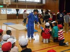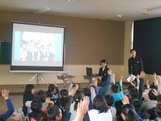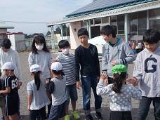 明るくあいさつができて、自分の意見をしっかりと言えるりっぱな中学生です。今日は、全校生の前で自己紹介をしてくれました。また、全校レクリエーションの説明をしてくれたり、子どもたちといっしょに給食を食べたり、がんばりました。子どもたちは、明日も会えるのを楽しみにしています。