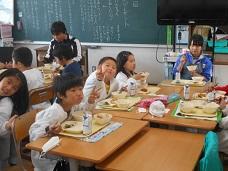 今日は、3年生と4年生の教室に給食食材の生産者の方がおみえになり、ふれあい給食を行いました。